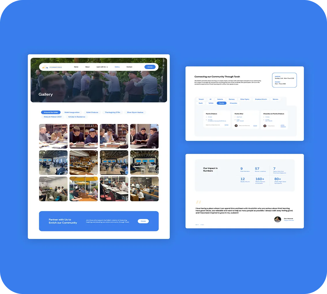 A platform that could attract quality donors and draw even higher community engagement in their programming by making the kollel's vibrant work visible, accessible, and compelling.