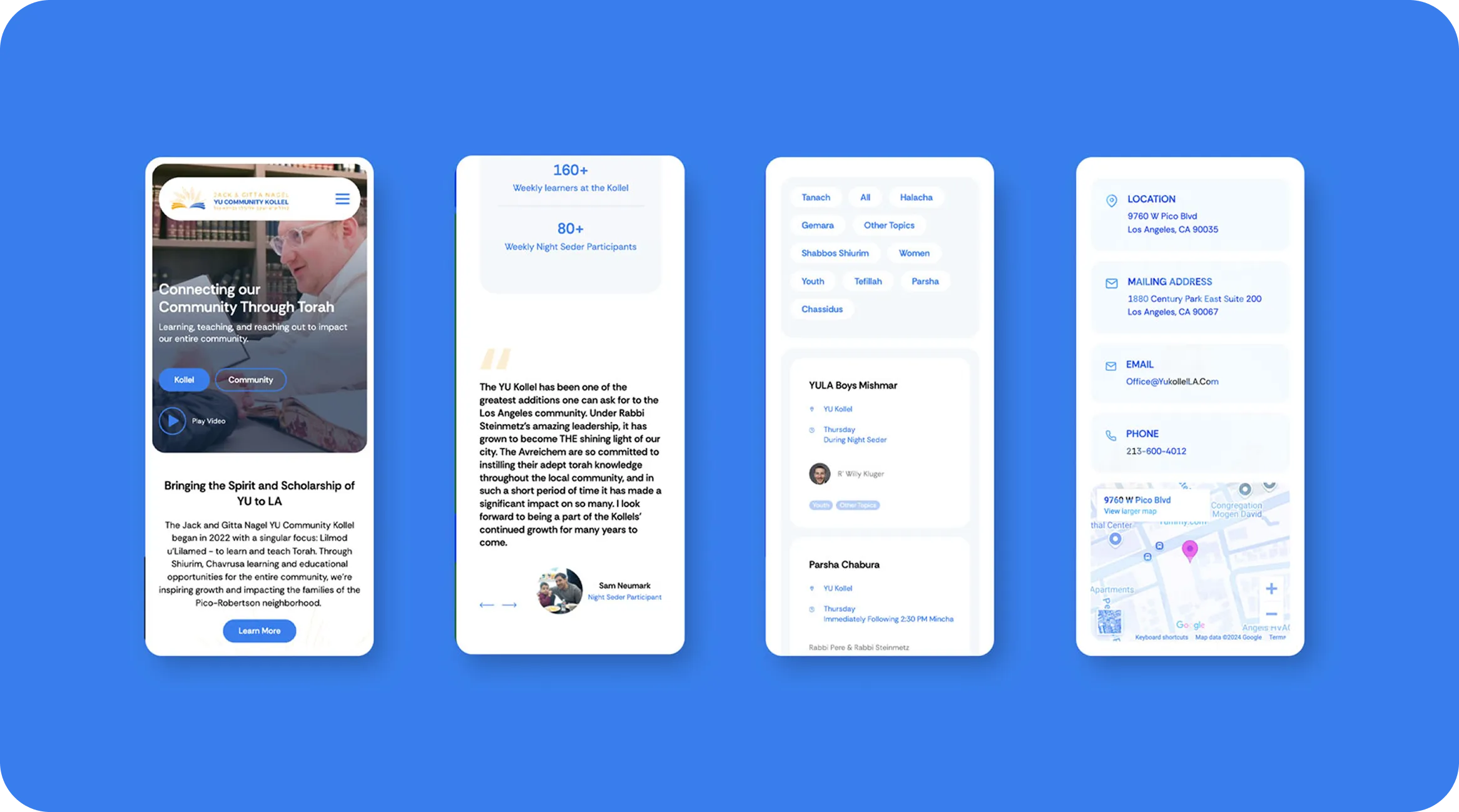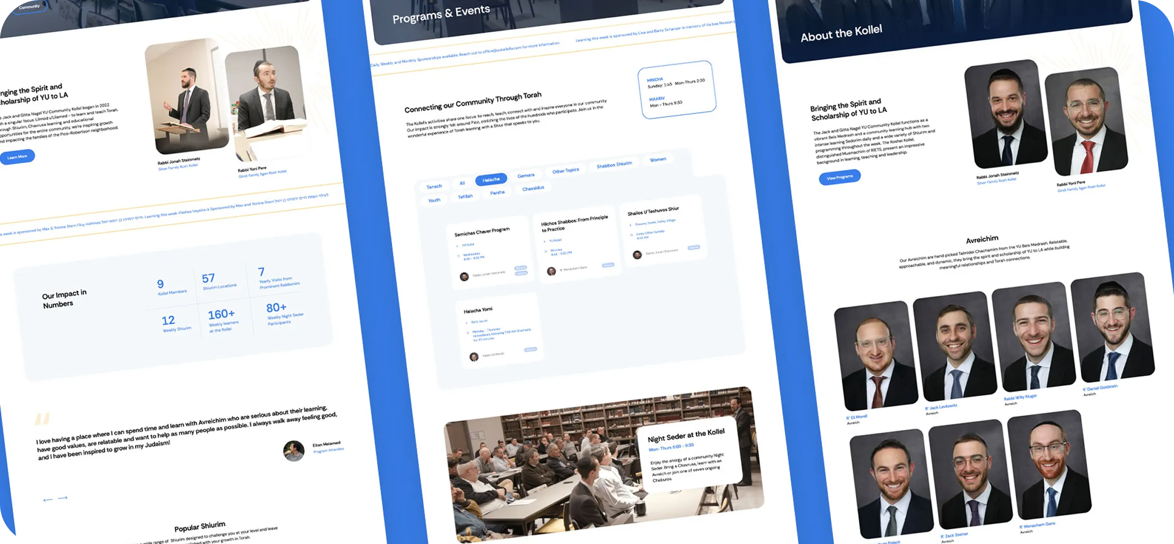 The YU Community Kollel of LA was doing remarkable work—offering diverse Torah learning programs, mentoring teens at the local YU high school, and connecting LA's modern Orthodox community through Torah. But their amateur website didn't reflect any of it. The site felt unintentional, unappealing, and disconnected, failing to showcase their vibrant programming or communicate the kollel's unique impact.